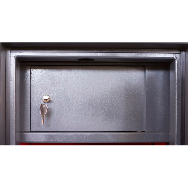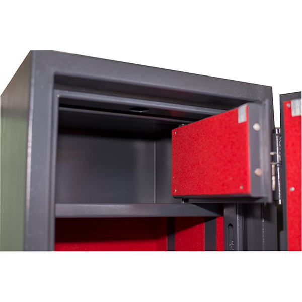 Внутрішній простір має розміри: 574 мм по висоті, 420 мм по ширині і 363 мм по глибині. Є полиця, яка дозволить розділити, наприклад, документи і гроші. Її можна легко зняти, якщо буде необхідність зберігати об'ємні предмети. Простір всередині сейфа дозволяє легко помістити звичайні папки з документами формату А4 в будь-якому положенні. Додатково в цій моделі є окремий касовий відділ (трейзер). Він зачиняється на ключ.