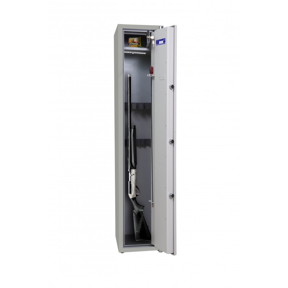 Внутрішній простір має розміри: 1494 мм по висоті, 444 мм по ширині і 273 мм по глибині. Він включає пересувний ложемент під зброю з оптикою і зйомний магнітний ложемент, що встановлюється на будь-яку зручну висоту. Додатково в цій моделі є касовий відділ (трейзер), який можна використовувати для зберігання патронів. Він закривається на ключ.