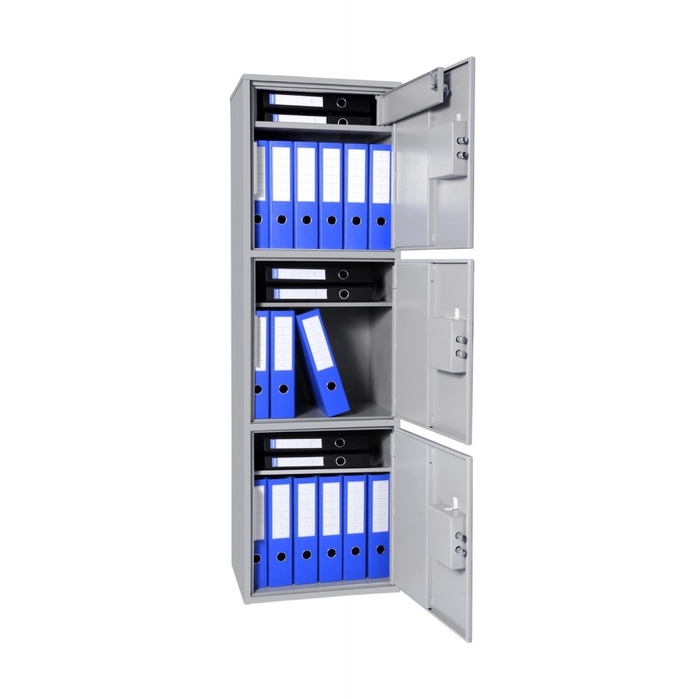 Внутрішній простір має розміри: 1498 мм по висоті, 458 мм по ширині і 327 мм по глибині. Головною особливістю цієї моделі є поділений внутрішній об’єм на 3 незалежні відділи. В нижньому і середньому є полиці, яка дозволять розмежувати папки з документами формату А4 в вертикальному вигляді з іншими цінними речами. У верхньому відділі присутня каса (трейзер), яка окремо зачиняється на ключ і може використовуватись для зберігання печаток чи інших важливих коштовностей.