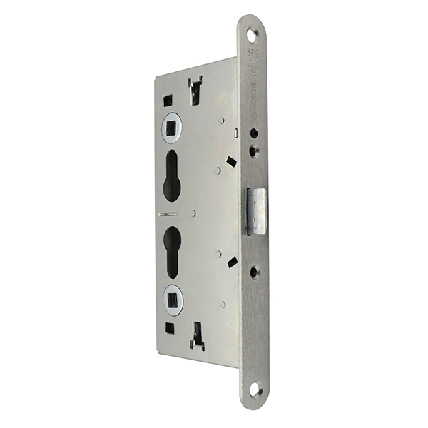 Принцип дії наступний: з внутрішньої сторони дверей язичок врізного замка завжди відчиняється простим натисканням на горизонтальну клавішу-ручку, забезпечуючи швидкий вихід. Ззовні відкривання буде відбуватися внутрішнім електромотором після успішного спрацювання зчитувача (відбувається подача короткочасного імпульсу). Наприклад, це може бути кодонабірна панель, зчитувач карт, домофон і т.д. Під клавішею на моторі можна налаштувати час, протягом якого язичок буде відчиненим – від 3 до 30 секунд. Також при замкнутому вимикачі (постійній подачі живлення) ручка буде залишатися відкритою. Вона закриється тільки після розмикання вимикача. Також ззовні може керуватися механічно серцевиною та натискною ручкою.