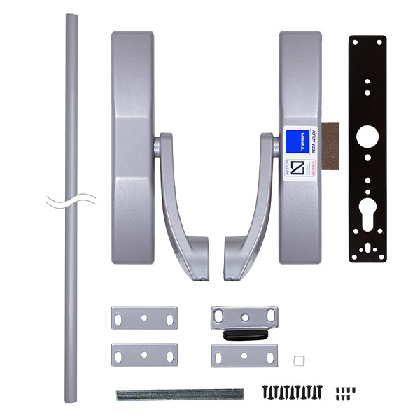 Принцип роботи такого пристрою максимально простий: відчинення дверей із внутрішньої сторони завжди відбувається шляхом натискання на горизонтальну штангу-ручку. Її довжина становить 900 мм. Це дуже зручно, адже в екстрений момент не потрібно шукати звичайну невелику ручку. Ззовні можливий варіант без доступу або з керуванням дверима за допомогою комплекту ручки із серцевиною TESA Modular Vector, який докуповується окремо. Може бути встановлений як на право, так і ліво сторонні полотна з максимальною вагою до 200 кг. В сірому кольорі відмінно буде виглядати на дверях подібних відтінків.