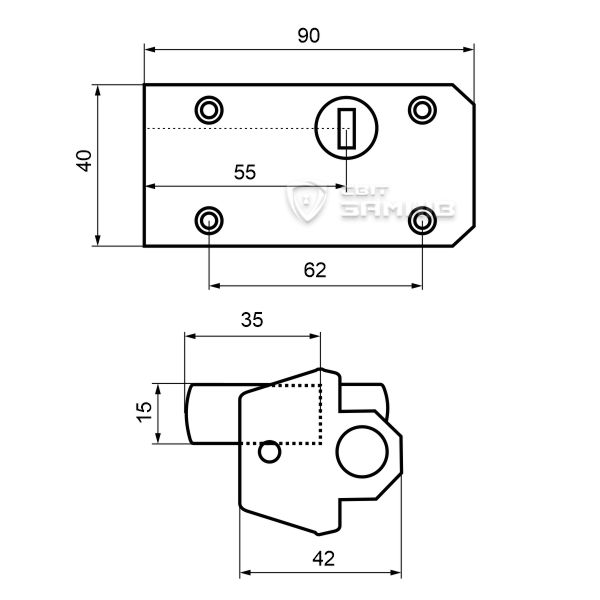 Опис Замок накладний ГОЛЕОЛ ЗН 4 (BS55мм) 3 ключа