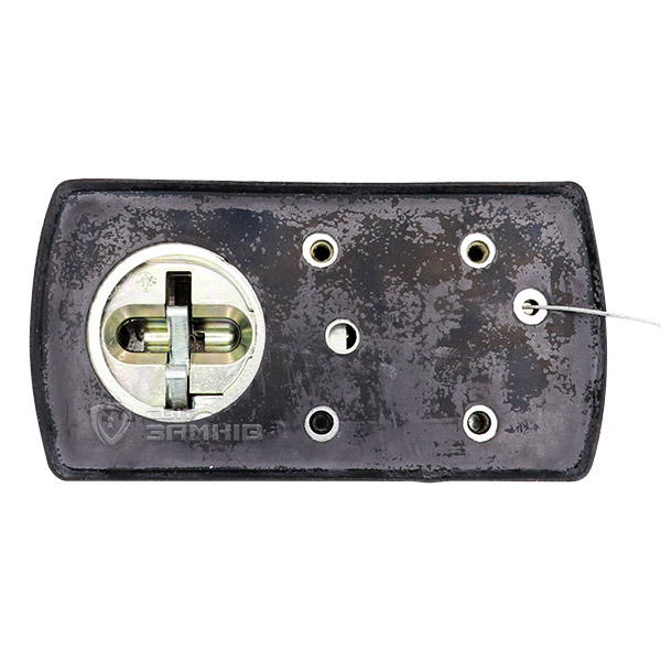 Автомобільний накладний замок чеського виробництва TOKOZ VANLOCK w/o cylinder. Встановлюється на розпашні задні та розсувні бокові двері мікроавтобусів та вантажних автомобілів. Виготовлений із нержавіючої сталі, що забезпечує високу стійкість до корозії та несприятливих погодних умов. Особливістю даною моделі є відсутність серцевини, її потрібно докупляти окремо. Такий замок сумісний з серцевинами європейського стандарту. Для захисту серцевини від пилу та бруду присутня пластмасова рухома заглушка.