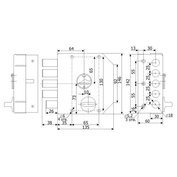 Опис Замок накладний ГАРДІАН 20.05 (BS64мм) вертикальна свердловина 5 ключів лівий (н)