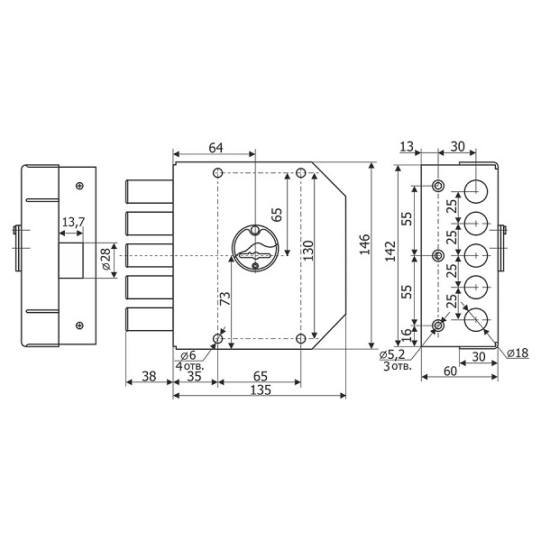 • Вихід ригелів - 38 мм.