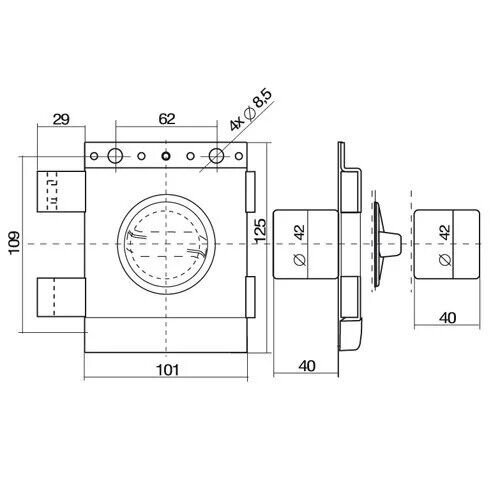 • Вихід ригеля – 29 мм.