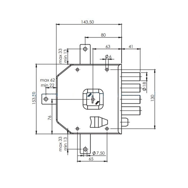 • Вихід ригеля - 41 мм.