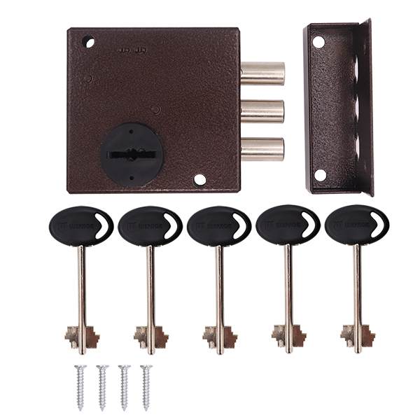 Замок покритий фарбою коричневого кольору, яка вдало протистоїть дрібним подряпинам. Це забезпечить первозданний зовнішній вигляд протягом великого періоду часу. Зворотня планка входить в комплект.