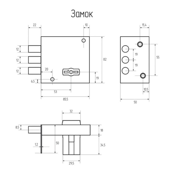 Дана модель універсальна – призначена для дверей як лівого, так і правого відкривання. керується сувальдним ключем. Він приводить в дію 3 круглих стальних ригеля діаметром 12 мм. Повний їхній вихід становить 22 мм.