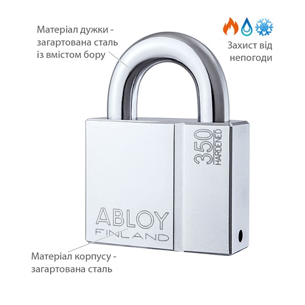 • Матеріал дужки – гартована сталь з вмістом бору.