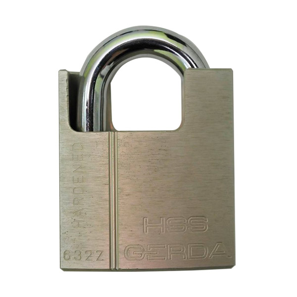 Польський зламостійкий замок навісного типу GERDA HSS 632Z. Зазвичай використовують на дверях, воротах, контейнерах, дверях вантажних машин тощо. Основу корпусу складає гартована сталь з додаванням елементів твердих та м’яких металів (HSS). Це запатентована технологія компанією GERDA. У поєднанні з міцним механізмом закриття диска GERDA CL це дозволяє добитися стійкості до розривів, скручування, свердління та ударів. Дужка виготовлена з гартованої сталі із твердими елементами на поверхі. Особливістю цієї моделі є те, що корпус майже повністю покриває дужку, що значно підвищує її стійкість до перекусування та перепилювання. Замок оснащений дисковою серцевиною з фінським ключем. Додатково є можливість створення системи Майстер ключ.