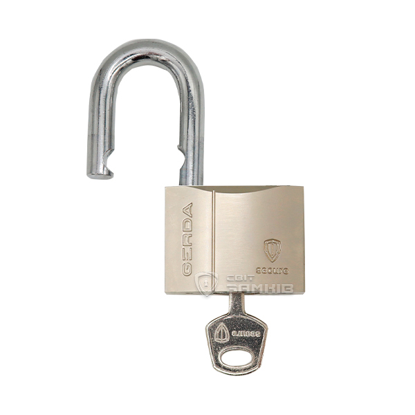 Польські навісні замки серії GERDA KSWS. Корпусу виготовлений із латунного сплаву. Основу дужки складає гартована сталь, завдяки чому її важко перепилити або перекусити. Керується серцевиною, яка складається з дисків у формі пів місяця. Ця серцевина стійка до корозії та різних погодних умов. Матеріал виготовлення дозволяє використовувати замок і на вулиці, і в приміщенні.