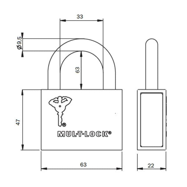 • Висота отвору дужки - 63 мм.