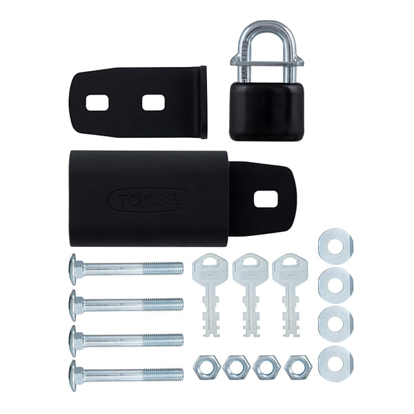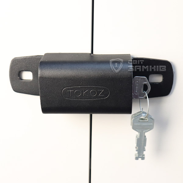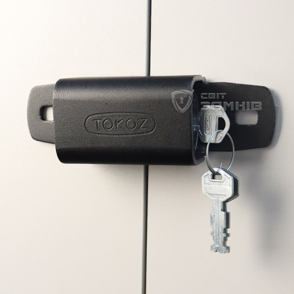 Навісний замок із захисними навісами TOKOZ UZ 240+. Призначений для розпашних подвійних дверей та воріт. Може використовуватися і в приміщенні, і на вулиці. Матеріал виготовлення корпусу та навіс – сталь. Дужка виготовлена із гартованої сталі. Все це забезпечує надійний захист від силового злому. До дужки приварена додаткова металева планка, яка обмежує рух між правою та лівою половинками навіс. Керується серцевиною з фінським ключем. Є можливість створення системи «Один ключ», коли одним ключем можна відкрити декілька замків.