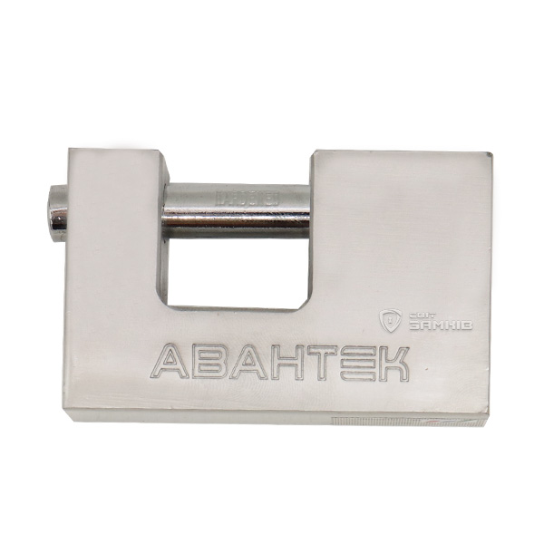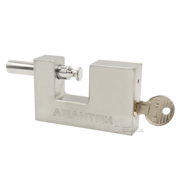 Український навісний замок серії АВАНТЕК ST. Особливістю цієї серії є п-подібна форма корпусу. В такому замку дужка більш прихована ніж в класичному варіанті, що підвищує її захист від будь-яких спроб вплинути на неї. Сам корпус виготовлений із сталі, а дужка із гартованої сталі. Присутня можливість закрити замок без використання ключів.