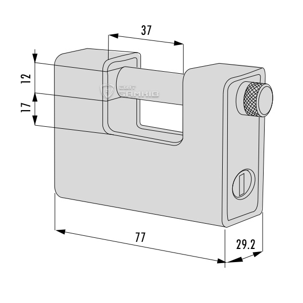 Дужка замка виконана з міцної сталі, що пройшла процес хімічного нікелювання. Таке покриття забезпечує не лише високу міцність, але й захист від корозії та атмосферних впливів. Замок зберігає свої експлуатаційні властивості навіть за тривалого використання у вологому кліматі або за перепадів температур.