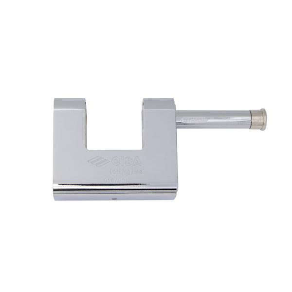 CISA LL 21810 – це надійний навісний замок, що спеціально розроблений для зовнішнього застосування. Його головною конструктивною особливістю є П-подібна форма корпусу, яка забезпечує додатковий захист дужки. Завдяки такій конструкції дужка значно краще захищена від прямого доступу та спроб її пошкодження або зламу.