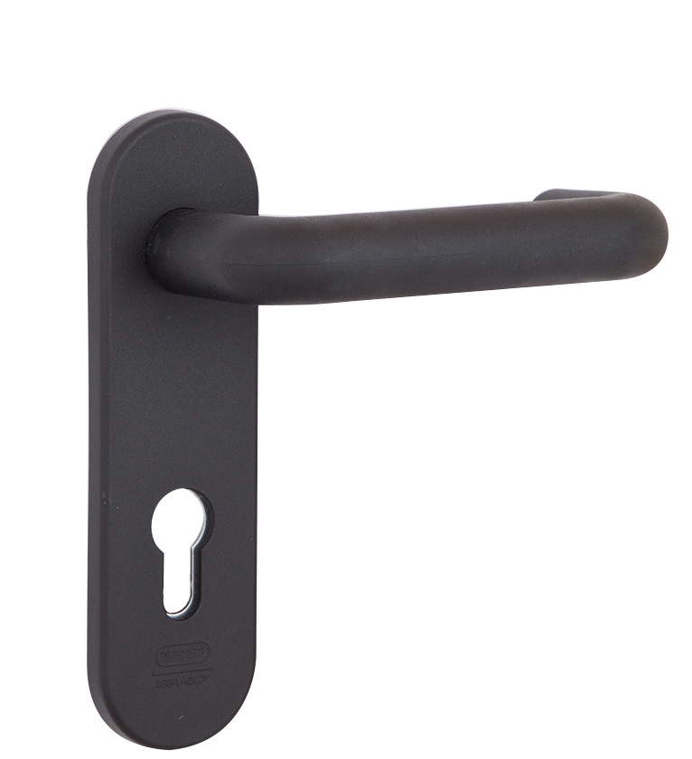 Ручки на планці NEMEF 2916/02 з лаконічним дизайном в чорному кольорі. Призначені для встановлення на протипожежні вхідні металеві двері товщиною від 40 до 63 мм із замком під серцевину: NEMEF 1739/03, 1901/21. Матеріал виготовлення - сталь. Міжосьова відстань складає 72 мм. Це основний критерій в процесі вибору такого типу дверних ручок. Планка ручки кріпиться до дверного полотна стяжними гвинтами.