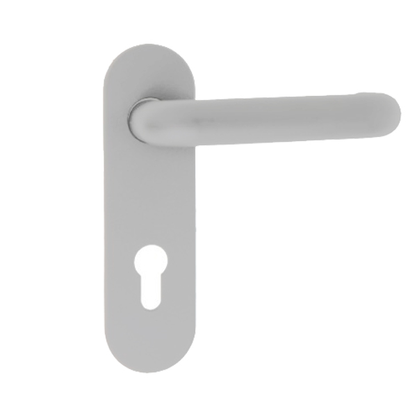 Ручки на планці CLASS 1919 з ергономічним дизайном в сірому кольорі. Зручна форма додасть зручності в користуванні. Призначені для встановлення на протипожежні вхідні металеві двері. Є отвір під серцевину.