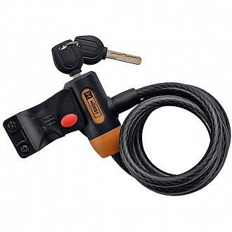 Навісний замок із тросом який призначений для захисту мото та велотранспорту. Керується серцевиною із профільним ключем. Для того щоб захистити лакофарбове покриття трос покритий гумою. В комплекті також є спеціальне кріплення за допомогою якого замок можна закріпити на рамі. Для захисту від пилу та бруду в корпусі є захисна кришка ключового отвору.