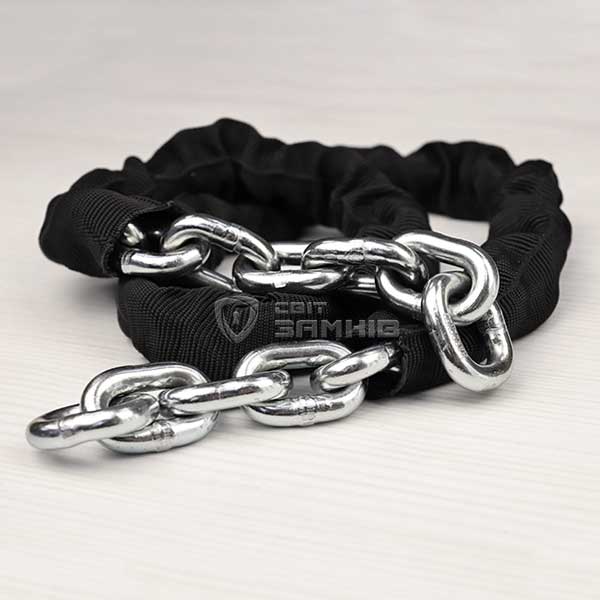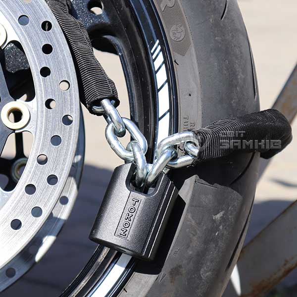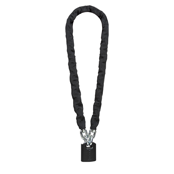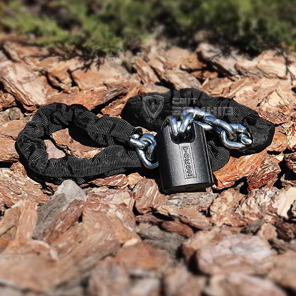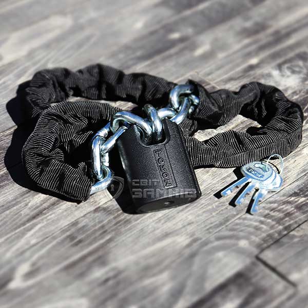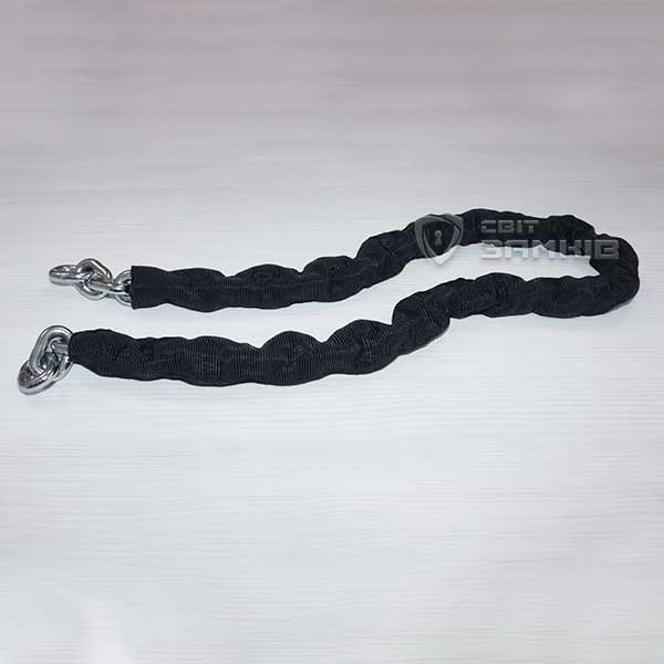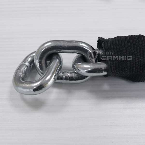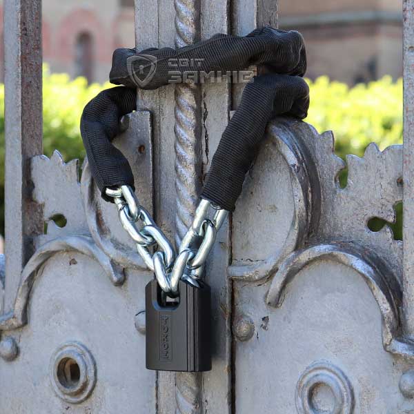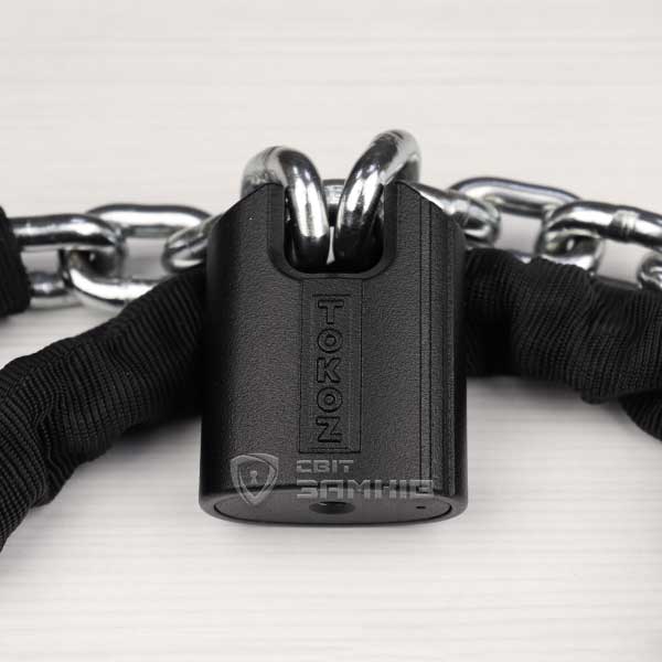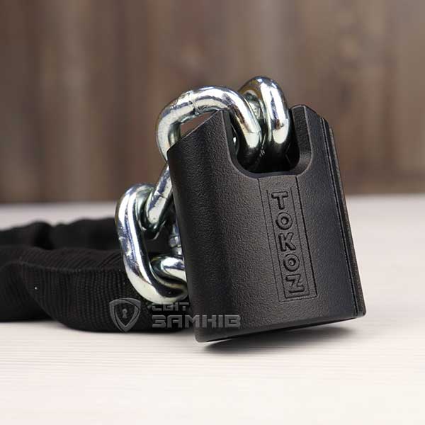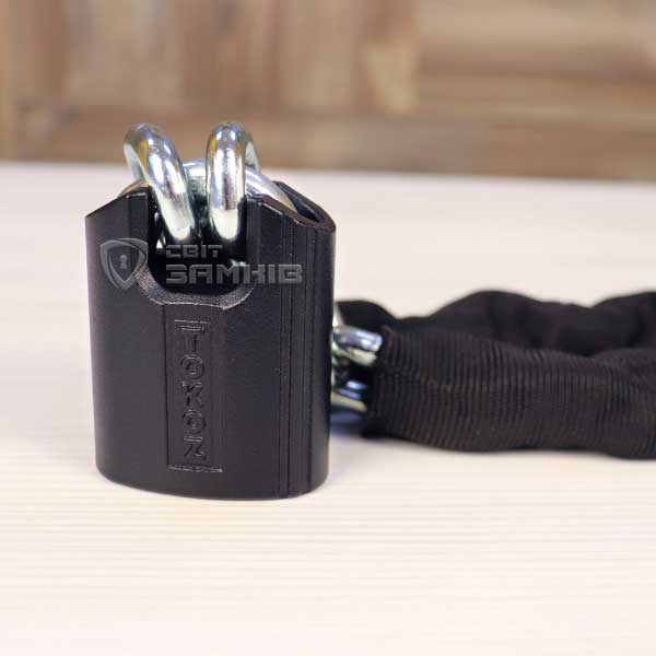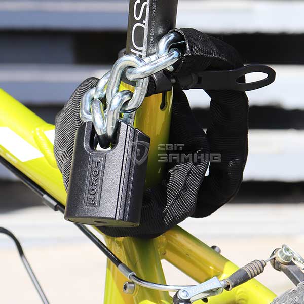 Навісний замок із ланцюгом призначений для захисту різних видів транспорту від крадіжки. Ланцюг захищений захисним кожухом який перешкоджає пошкодженню лакофарбового покриття. Для більшої надійності кінці тіла ланки зварені та мають гальванічне покриття. Сам корпус замка виготовлено зі сталі з гартованою дужкою та дисковою системою замикання.