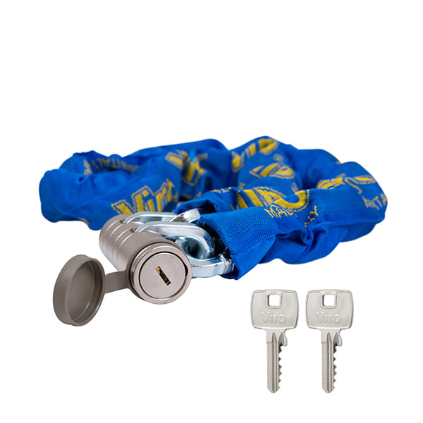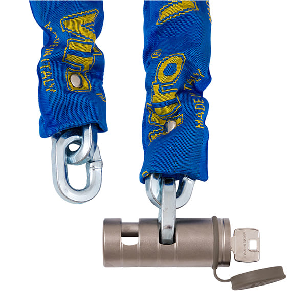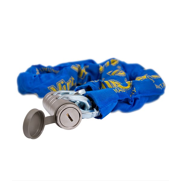 Мото та велозамок із ланцюгом призначений вберегти Ваш транспортний засіб від крадіжки. Ланки ланцюга зварені для більшої надійності. Покритий нікелем хімічним способом  "NIPLOY PROCESS". При закритому замку скоба повністю захована в корпусі. Нейлоновий чохол збереже лакофарбове покриття Вашого транспортного засобу.