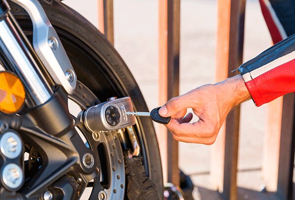 • Мотозамок із ланцюгом, замком на гальмівний диск та сигналізацією.