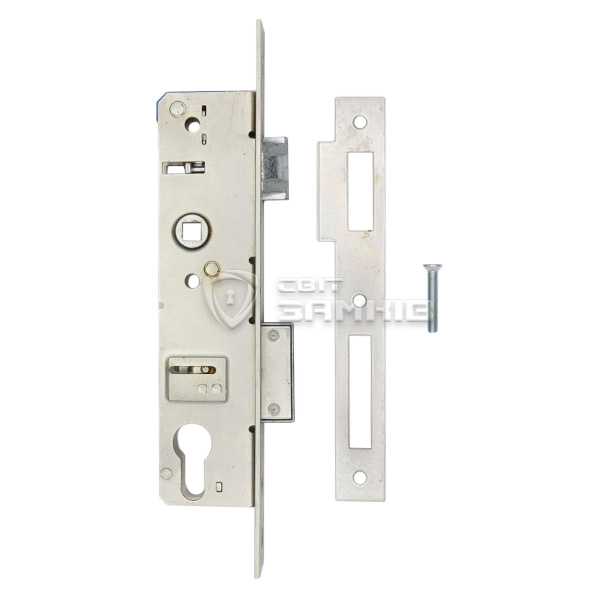 Замок Euro-Elzett встановлюється врізним методом на металопластикові вхідні двері в якості основного. Керується ручками і серцевиною стандарту EURO DIN. Вона в комплект не входить та докуповується окремо в залежності від ваших потреб. Замок оснащений одним прямокутним стальним ригелем. Його повний вихід складає 15 мм. Завдяки реверсивному язичку замок підходить як для ліво, так і право-сторонніх дверей.
