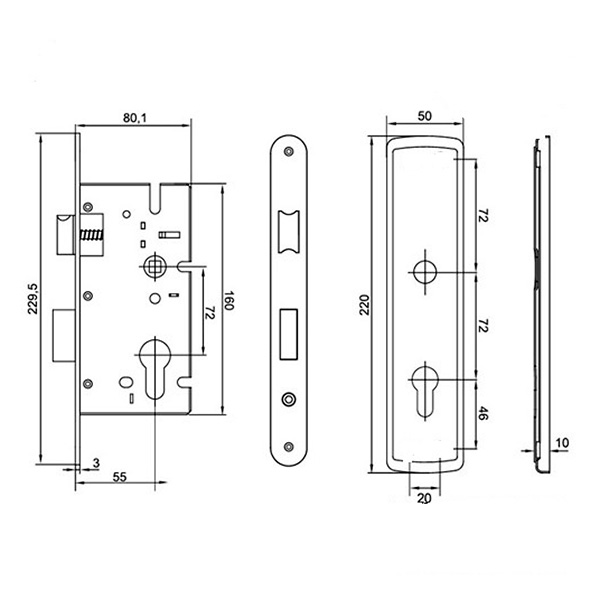 Механізм замка LOB Z-755B (BS55*72мм) цинк