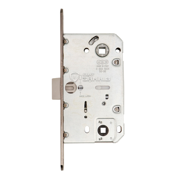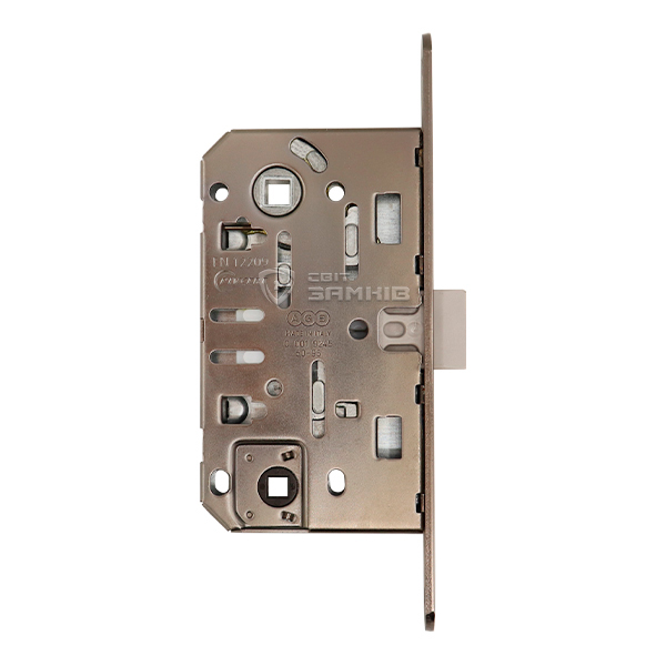 Замок серії Mediana Evolution - італійська надійність та довговічність. Головна перевага - тиха робота, замок не клацає при закриванні. Поліамідний язичок робить цей замковий механізм БЕЗШУМНИМ, а отже ідеальним для установки на міжкімнатні двері (дитяча кімната, спальня, ванна, туалет). Під отвором для ручки є місце для комплектації воротком. Двері будуть зачинятись поворотом "барашки".
