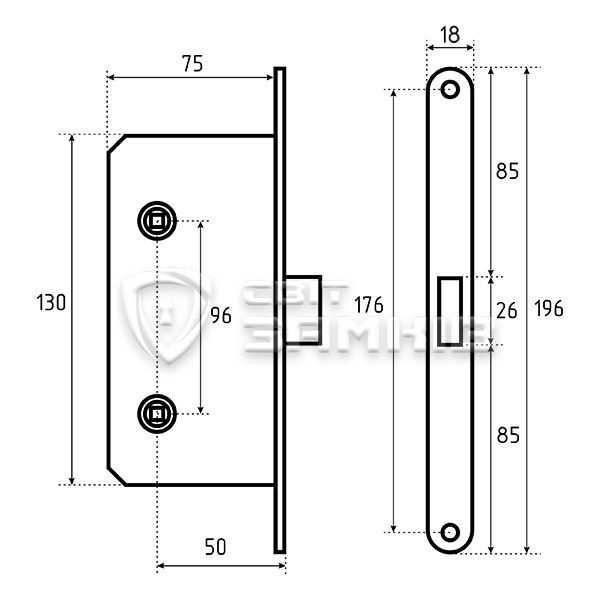 • Язичок реверсивний – замок підходить на праві та ліві двері.