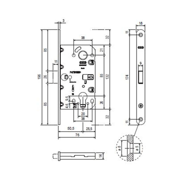• Корпус замка взаємозамінний із будь яким іншим замком серії Mediana.