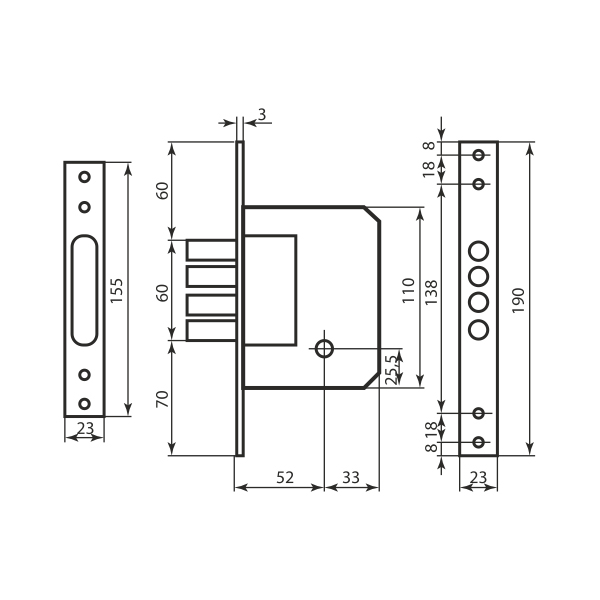 • Корпус замка взаємозамінний із Kale 189-4MF, Siba 189-4MF, Class 189-4MF.