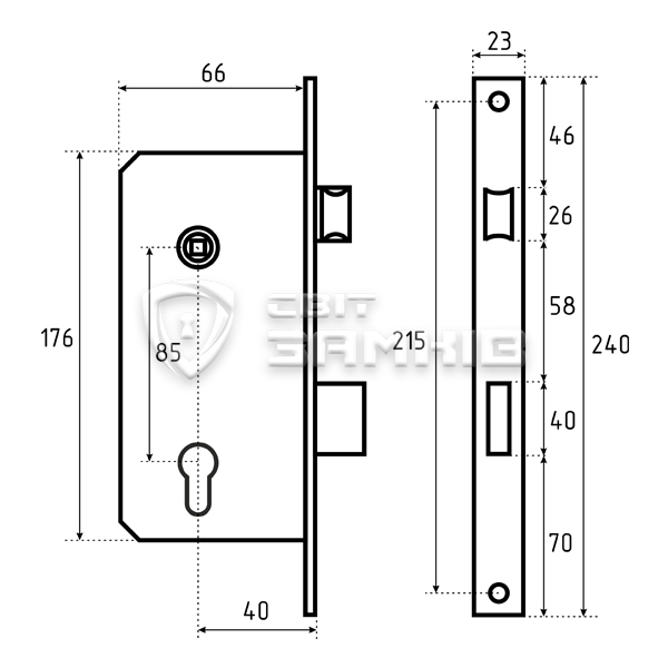 Механізм замка HORST HR-06S (BS66,5*42мм) правий