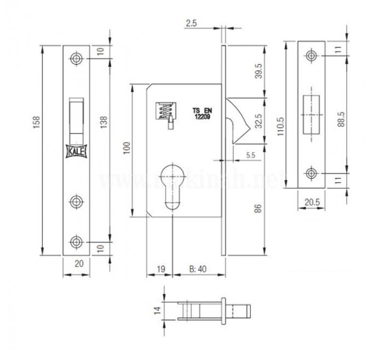 Дверна фурнітура турецької ТМ KALE є однією з найкращих по співвідношенню ціна/якість. Дана модель - це врізний замок, який встановлюється на розсувні дерев'яні та металеві двері. Особливістю цього замка є гакоподібний ригель, який виготовлений із цинкового сплаву. Його повний вихід складає 5,5 мм. При зачиненні він надійно фіксується в зворотній планці. Керується замок серцевиною стандарту EURO DIN. Вона в комплект не входить та докуповується окремо в залежності від ваших потреб.