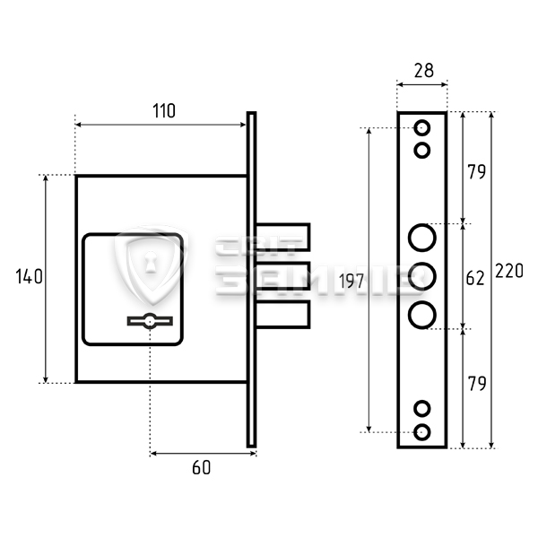 • Бронепластина із загартованої сталі, що сприяє захисту корпусу замка і опірної стійки від висвердлювання.
