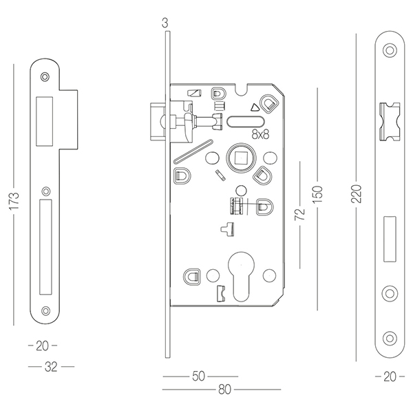 Механізм замка MVM M-72C PZ встановлюють на вхідні та міжкімнатні двері з дерева. Має додаткові отвори для стяжних гвинтів ручок на розеті. Керується ручками і серцевиною стандарту EURO DIN. Вона в комплект не входить та докуповується окремо в залежності від ваших потреб. Язичок із сталі є реверсивним, тому підходить як для правих так і для лівих дверей. Рекомендуємо до даної моделі підбирати ручки на планці з міжосьовою відстанню 72 мм.