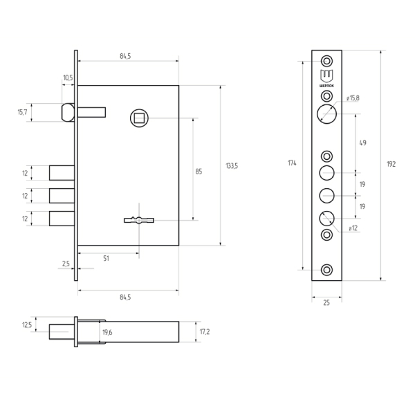 • Розміри замка – 84,5х133,5 мм.
