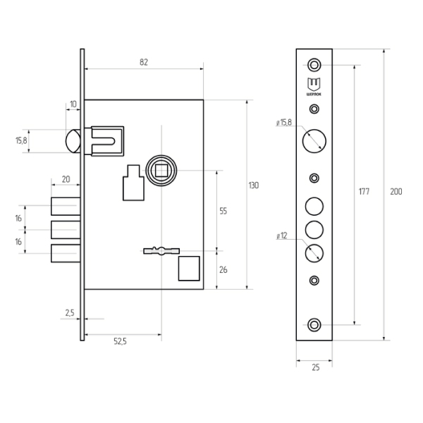 • Розміри замка – 82х130 мм.
