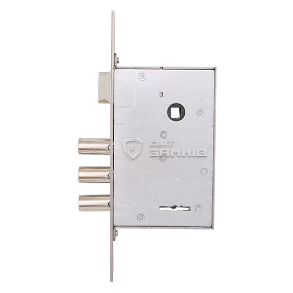 Закривання здійснюється 3-ма ригелями зі сталі діаметром 13,8 мм. Вони надійно фіксують двері, забезпечуючи достатній рівень безпеки. Язичок реверсивний, тому замок можна встановити як і на ліві, так і на праві двері. В даній версії в комплектації 5 ключів.