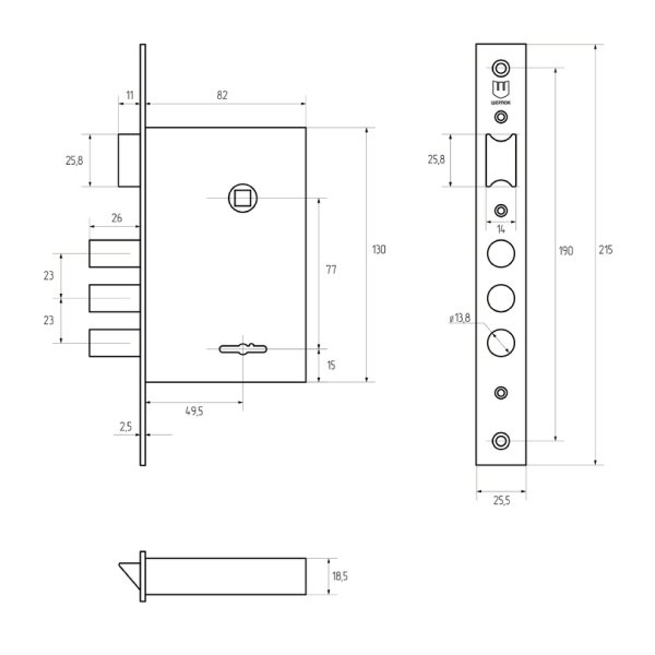 • Розміри замка – 82х130 мм.