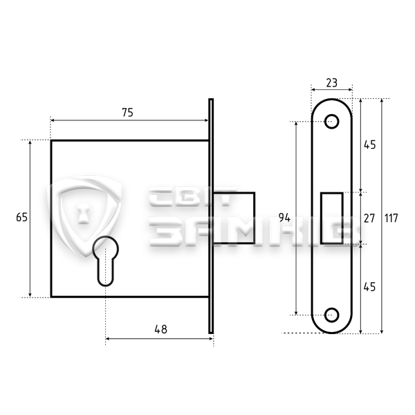 • Закривається на один прямокутний ригель з виходом на 25 мм.
