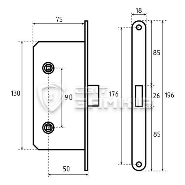 • Язичок реверсивний – замок підходить на праві та ліві двері.