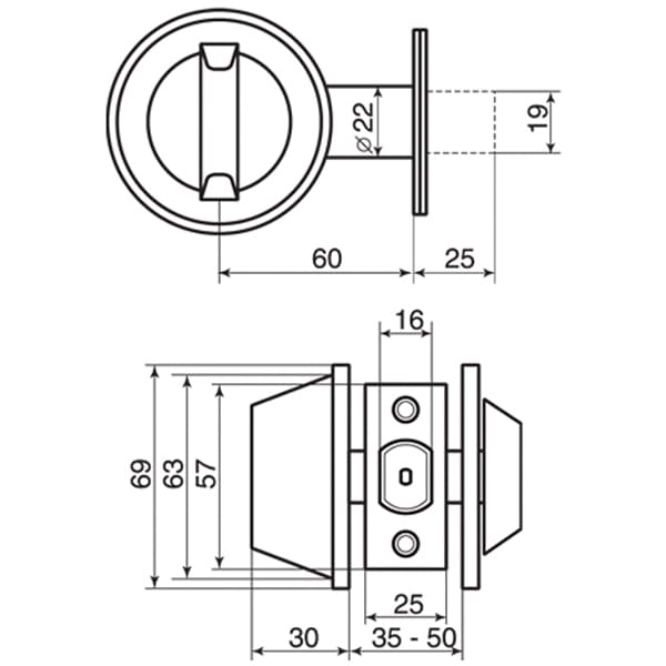 Замок має бексет в межах 60 мм. Даний варіант представлений у варіанті “ключ-вороток”, тобто із зовнішньої сторони керується ключем, а із внутрішньої воротком. Закривається одним ригелем із гартованої сталі. Його повний вихід складає 25 мм.