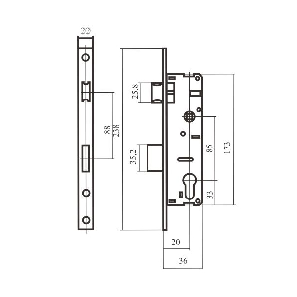 Опис Механізм замка BRUNO 153 (BS20*85мм, 22мм)
