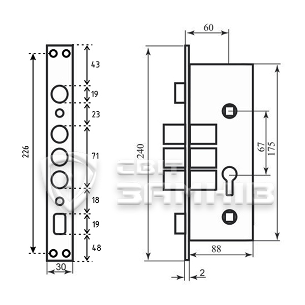 Комплект замка LOCKOD L240 (BS60мм) механічний кодовий