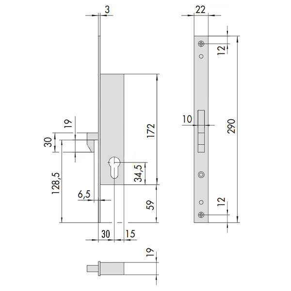 Опис Механізм замка CISA 46240.30 гак (BS30мм, 22 мм) нержавіюча сталь