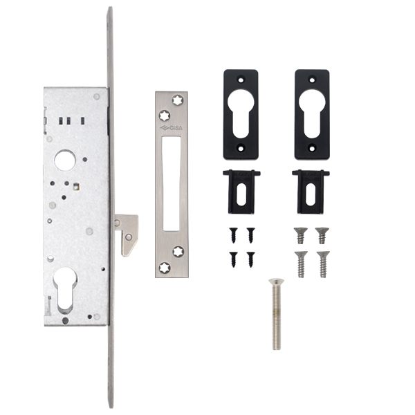 CISA 46240 – це врізний замок, що призначений для вхідних розпашних або розсувних дверей з алюмінію чи металу. Його можна використовувати і на відкатних воротах. Замок має компактний корпус товщиною лише 19 мм, що дозволяє встановлення у вузькі профілі дверей. Він виконує функцію додаткового замка, керується тільки циліндром стандарту EURO DIN (серцевина купується окремо відповідно до Ваших потреб).