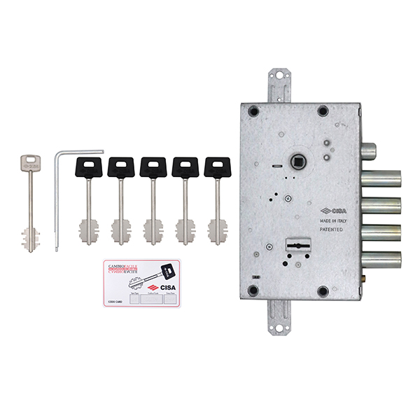 CISA 57665 ALPS – це італійський замок, що стане надійним вибором для захисту металевих вхідних дверей, особливо важких броньованих моделей вагою понад 200 кг. Цей врізний механізм із 4-ма ригелями оснащений сувальдним типом закривання та керується ручкою, а також має язичок і можливість перекодування. Замок використовується як основний, забезпечуючи високу надійність і стійкість до зламу.