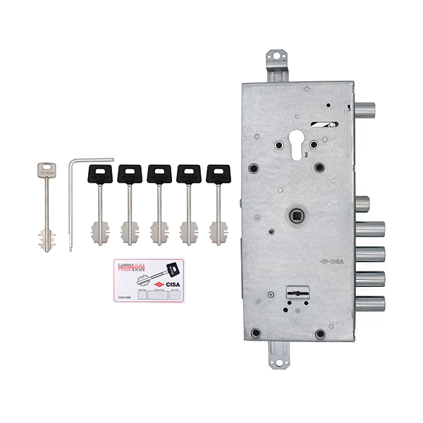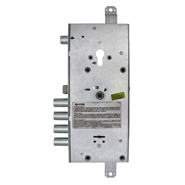 Корпус замка CISA 57965 ALPS поєднує дві системи замикання – сувальдним ключем та циліндром. Користується популярністю для встановлення на вхідних металевих дверях вагою до 200 кг. Нижні чотири ригелі керуються сувальдним ключем. Верхній ригель – циліндром, який в комплект не входить. Обидва механізми працюють незалежно один від одного.